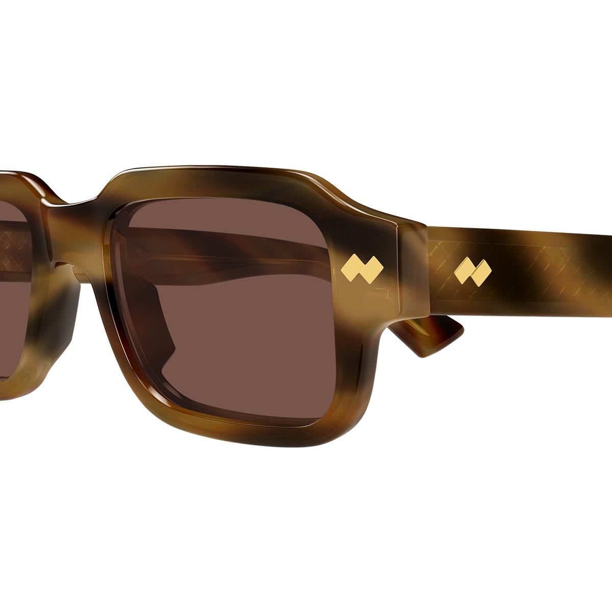 Elemento distintivo del modello è l’anima dell’asta a vista, impreziosita dall’iconico motivo Intrecciato, firma inconfondibile di Bottega Veneta. Un dettaglio ricercato che valorizza l’occhiale con discrezione, rendendolo immediatamente riconoscibile e di grande classe.