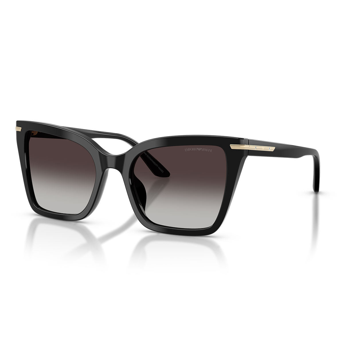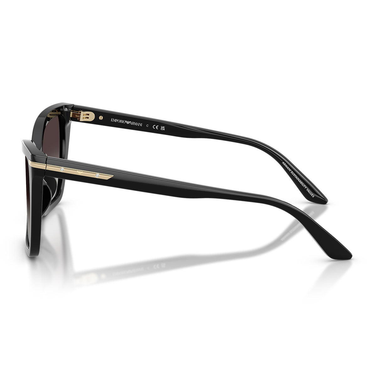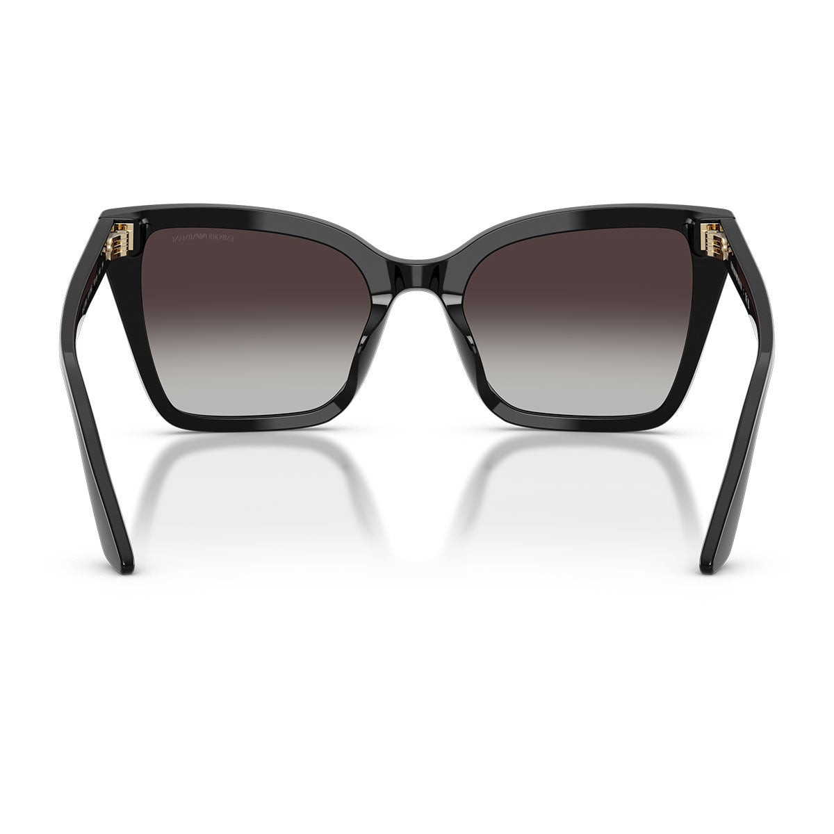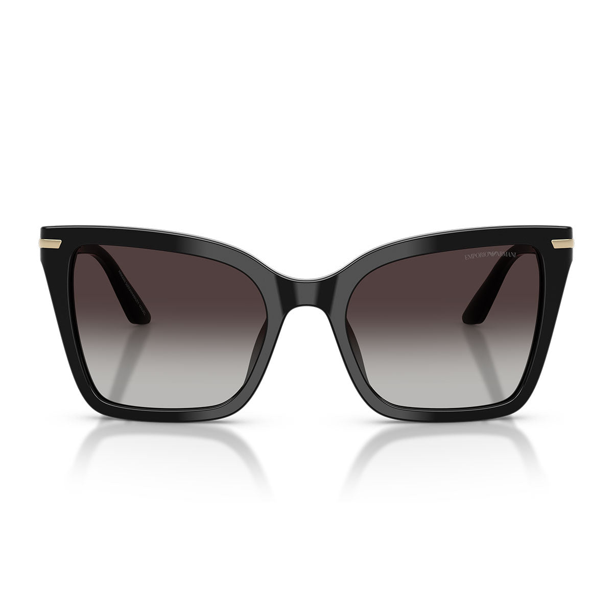 Un elegante dettaglio in metallo si estende armoniosamente dal frontale fino alle aste, impreziosito dal logo Eagle inciso al laser, simbolo iconico di Emporio Armani. Il logo è incorniciato da due delicati strass, che aggiungono un discreto tocco di luminosità e glamour.