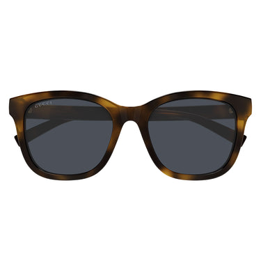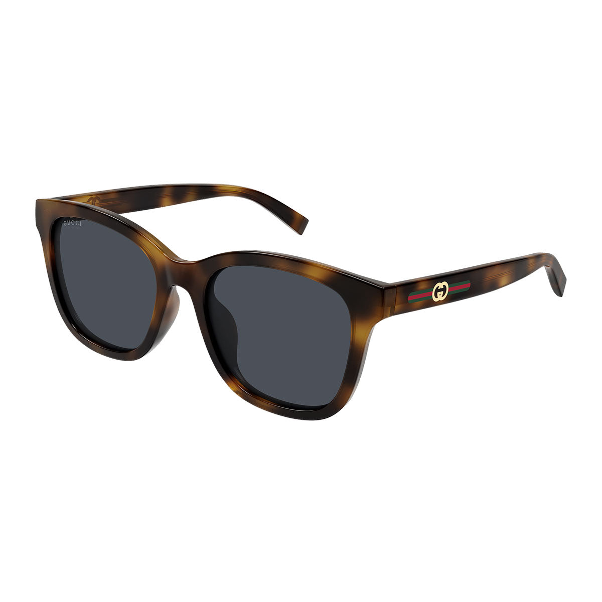 La montatura presenta una forma cat-eye squadrata oversize, decisa ma femminile, ideale per chi cerca un look d'impatto senza rinunciare all’eleganza. Il design è completato dal logo Interlocking G, posizionato con equilibrio e discrezione per valorizzare l’identità del brand.