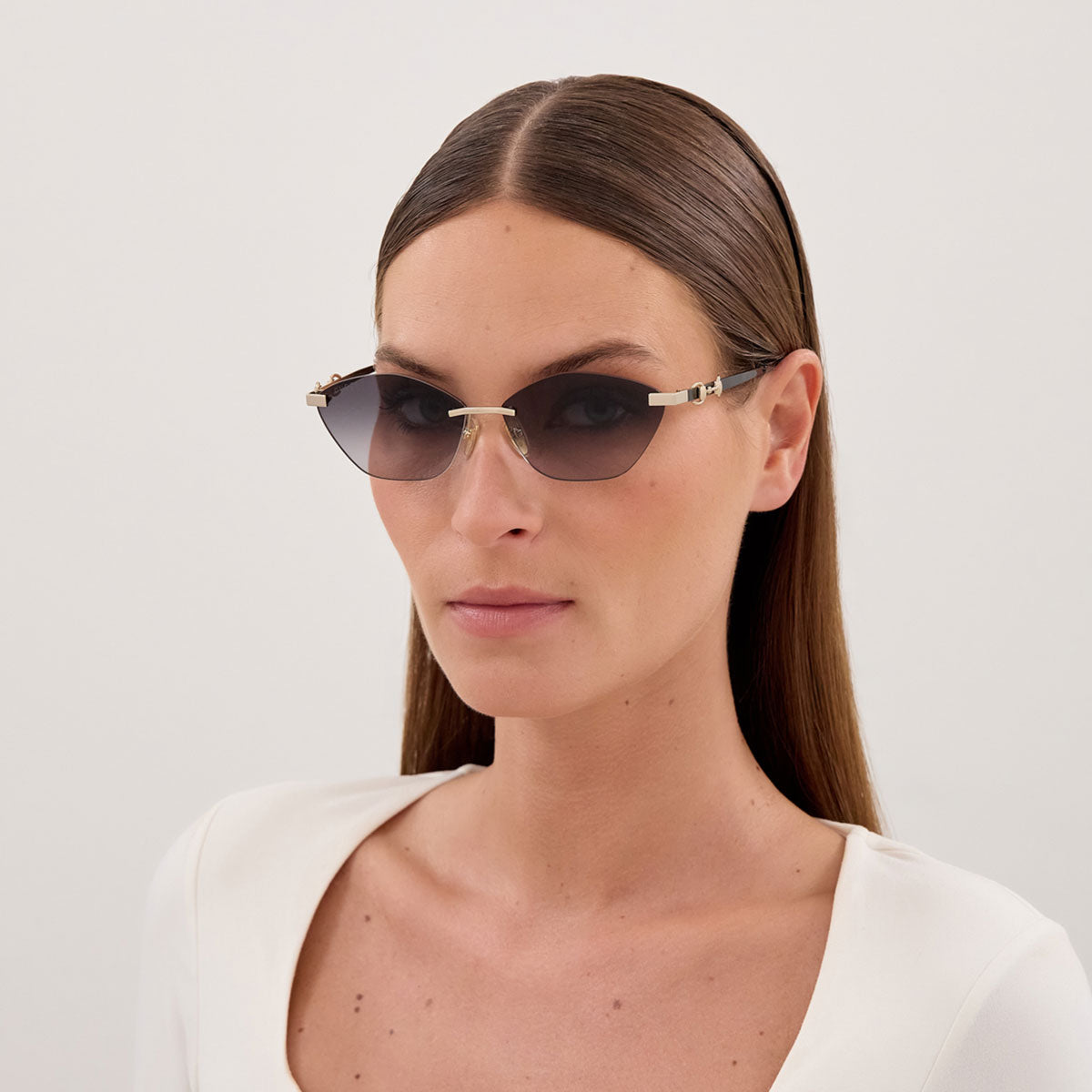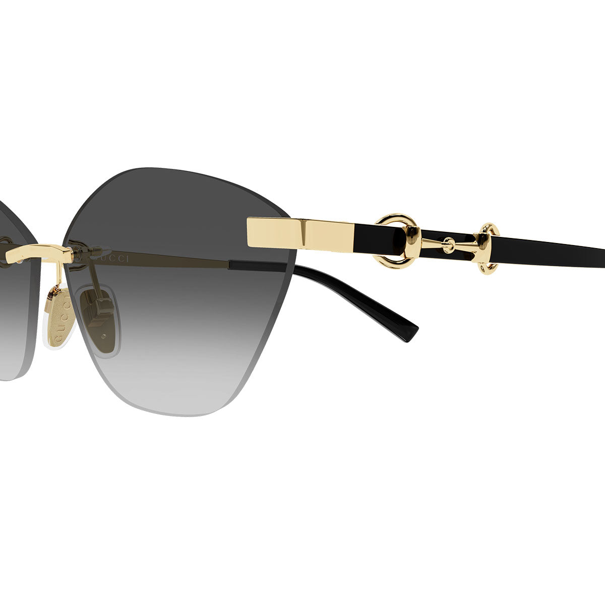 La struttura glasant esalta la leggerezza del modello ed è arricchita dall’iconico dettaglio Morsetto che attraversa l’asta, elemento simbolo dell’estetica Gucci. La montatura cat-eye geometrica dona carattere e definizione allo sguardo, valorizzando uno stile femminile, audace e ricercato.