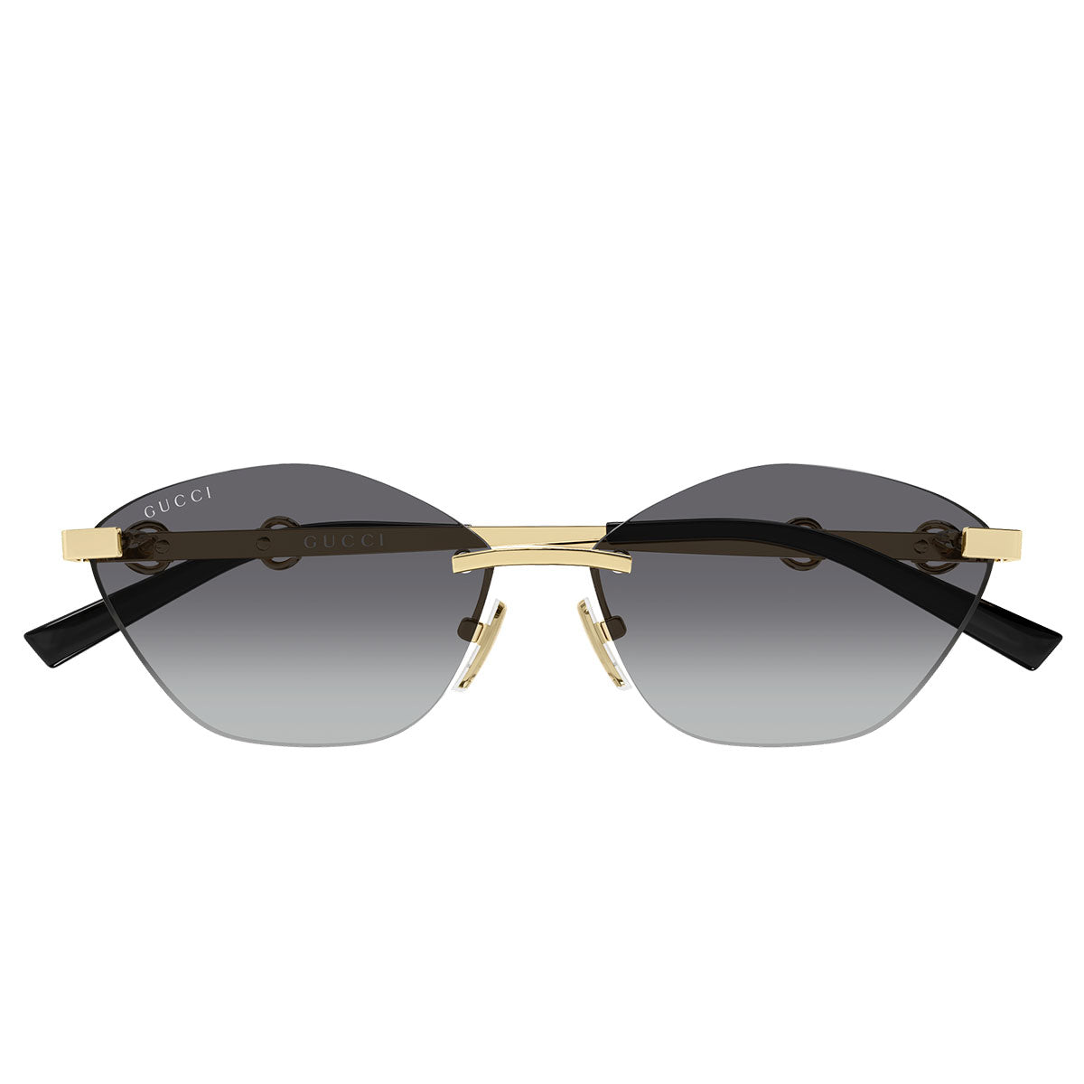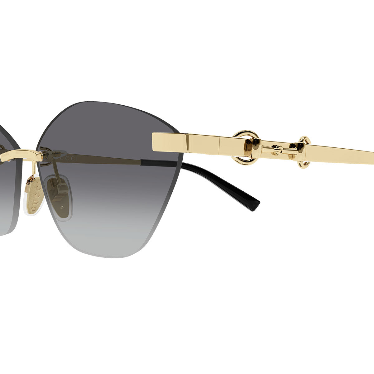 La struttura glasant esalta la leggerezza del modello ed è arricchita dall’iconico dettaglio Morsetto che attraversa l’asta, elemento simbolo dell’estetica Gucci. La montatura cat-eye geometrica dona carattere e definizione allo sguardo, valorizzando uno stile femminile, audace e ricercato.