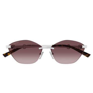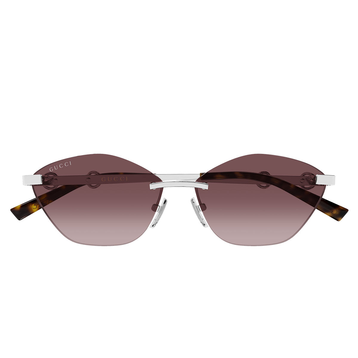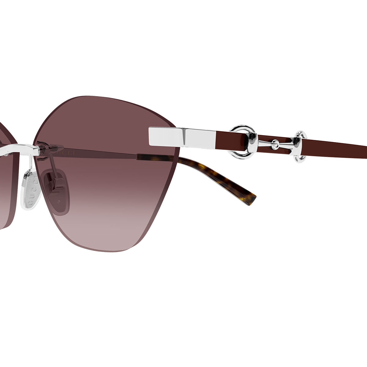 La struttura glasant esalta la leggerezza del modello ed è arricchita dall’iconico dettaglio Morsetto che attraversa l’asta, elemento simbolo dell’estetica Gucci. La montatura cat-eye geometrica dona carattere e definizione allo sguardo, valorizzando uno stile femminile, audace e ricercato.