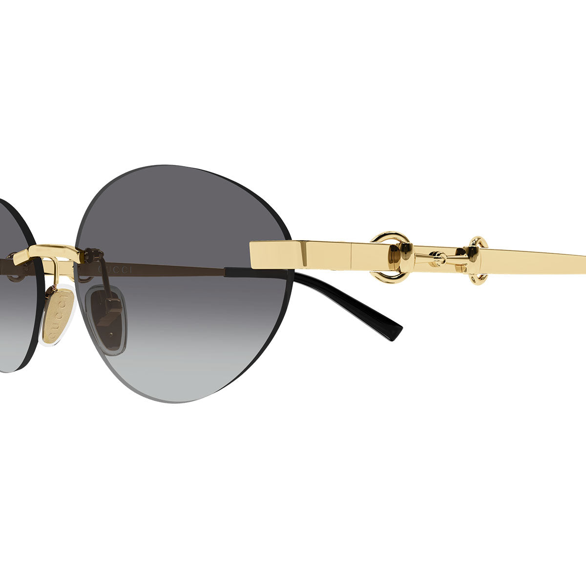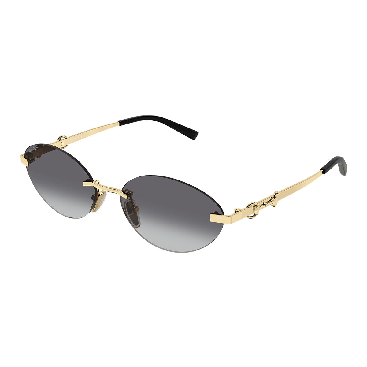 La struttura glasant dona leggerezza e raffinatezza al modello, mentre l’iconico dettaglio Morsetto che attraversa l’asta richiama l’heritage Gucci con un segno riconoscibile e prezioso. La forma femminile ovale stretta valorizza delicatamente i lineamenti, offrendo uno stile sofisticato e contemporaneo.