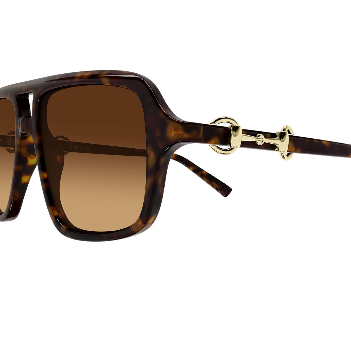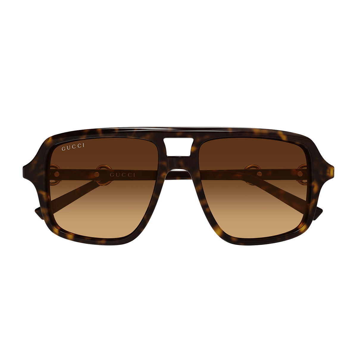 La struttura in acetato è impreziosita dall’iconico dettaglio Morsetto che attraversa l’asta, simbolo distintivo dell’universo Gucci. La montatura pilot con doppio ponte richiama un’estetica classica e sofisticata, perfetta per chi ama un design deciso ma raffinato.