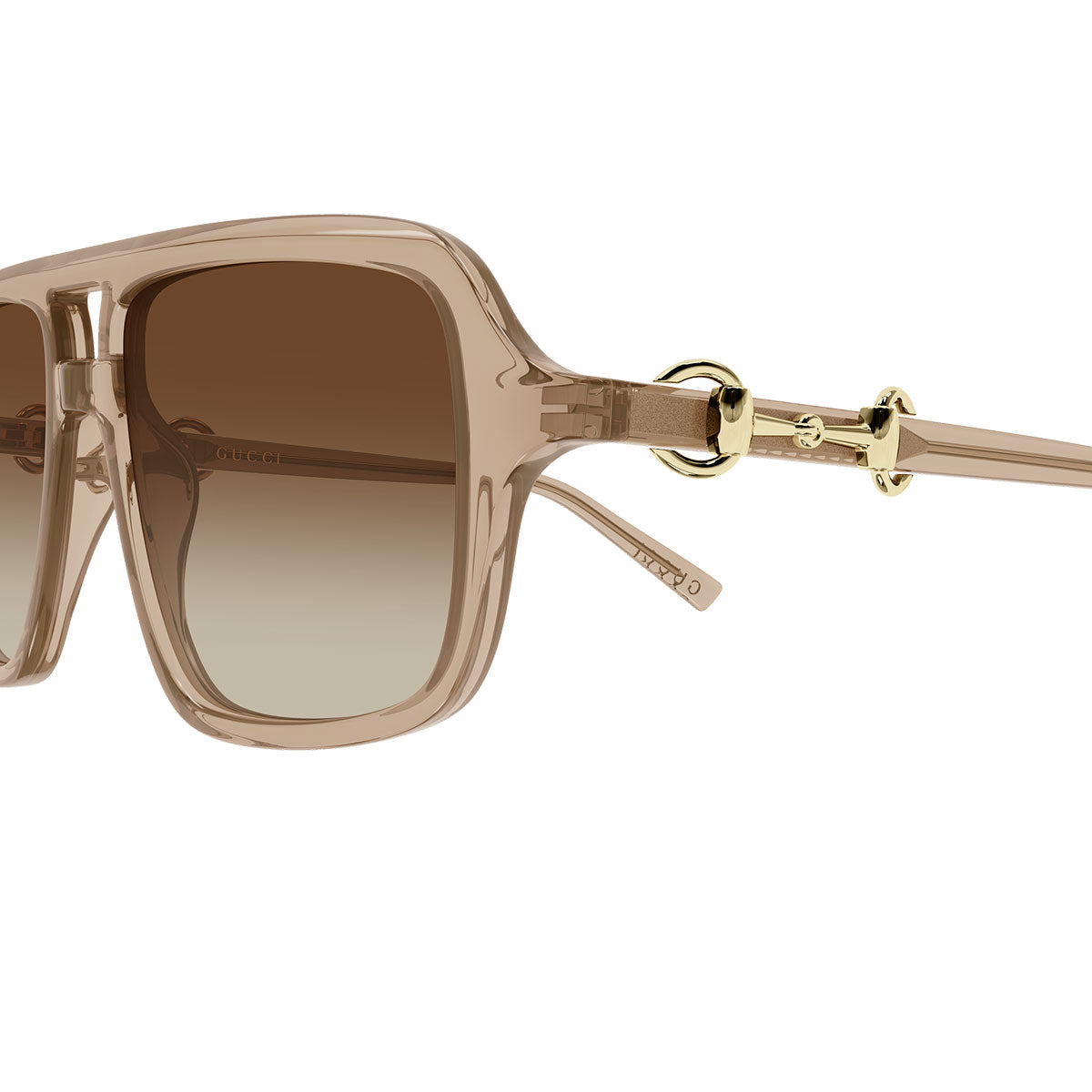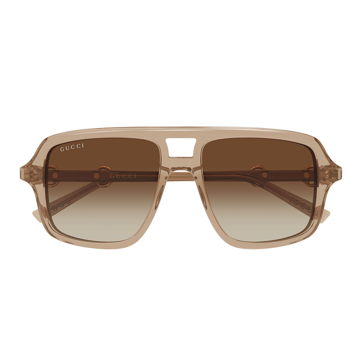 La struttura in acetato è impreziosita dall’iconico dettaglio Morsetto che attraversa l’asta, simbolo distintivo dell’universo Gucci. La montatura pilot con doppio ponte richiama un’estetica classica e sofisticata, perfetta per chi ama un design deciso ma raffinato.