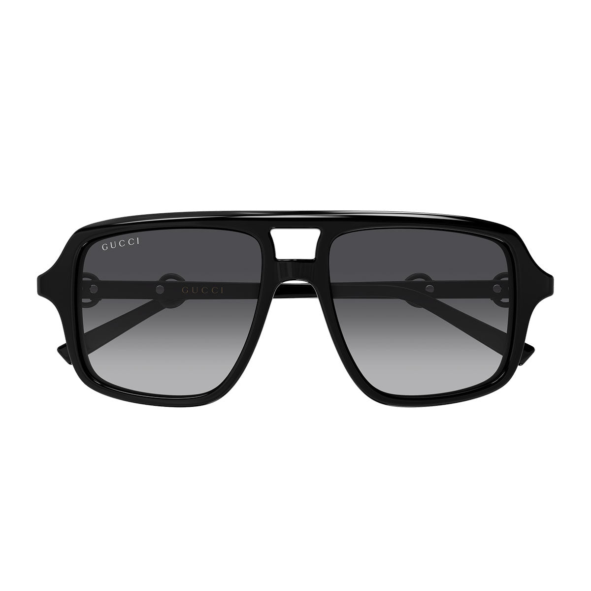 La struttura in acetato è impreziosita dall’iconico dettaglio Morsetto che attraversa l’asta, simbolo distintivo dell’universo Gucci. La montatura pilot con doppio ponte richiama un’estetica classica e sofisticata, perfetta per chi ama un design deciso ma raffinato.