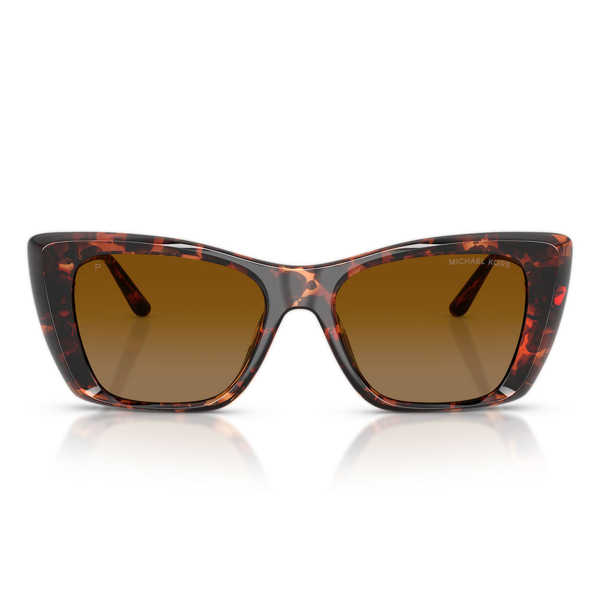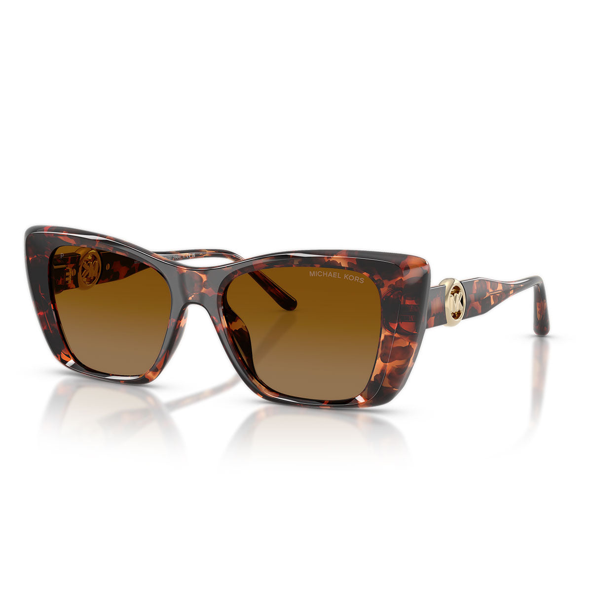 La montatura squadrata presenta bordi smussati e una silhouette decisa, pensata per chi ama accessori che non passano inosservati. Ispirato alla linea di accessori Michael Kors, il nuovo hardware metallico aggiunge un tocco di femminilità raffinata, valorizzando il design architettonico dell’occhiale.