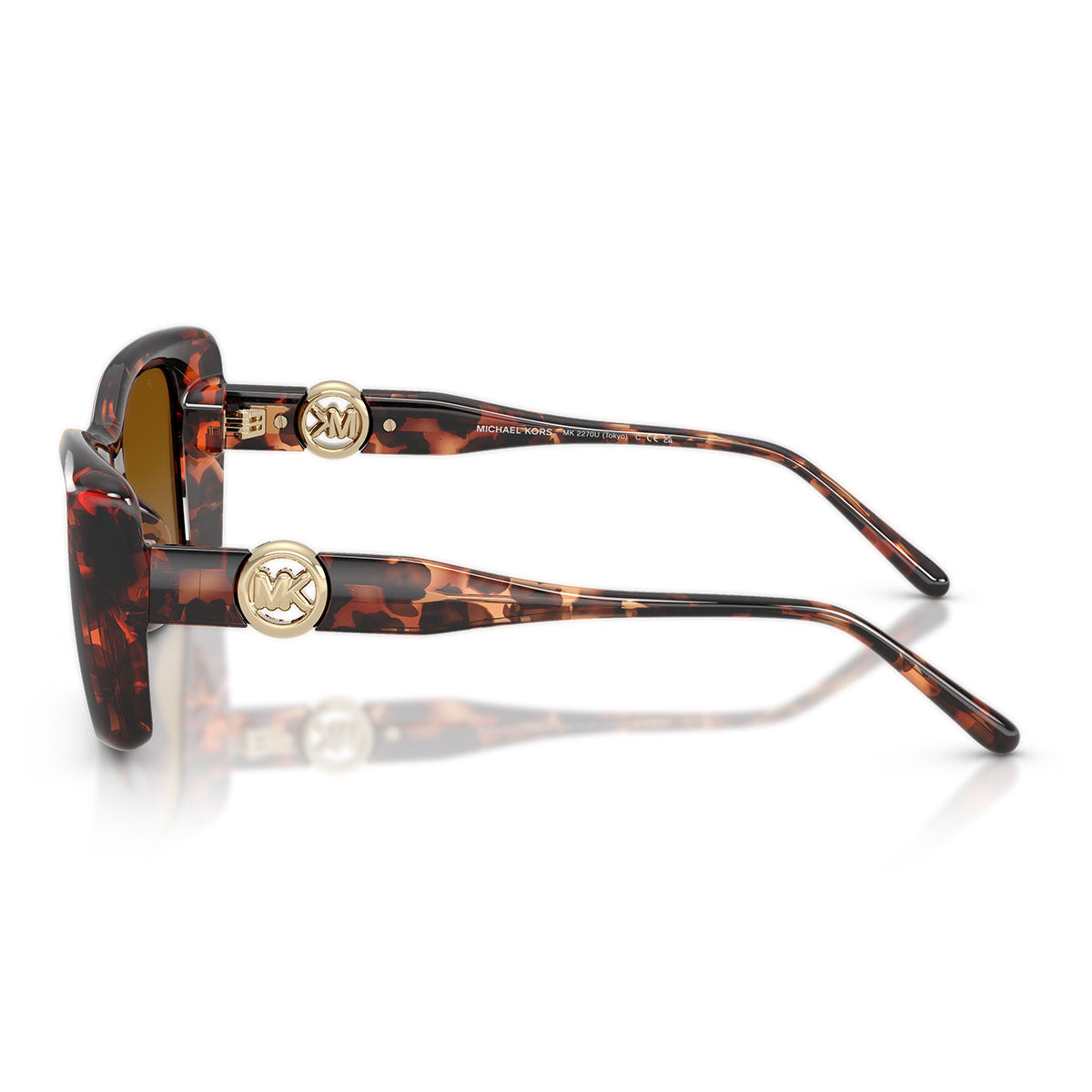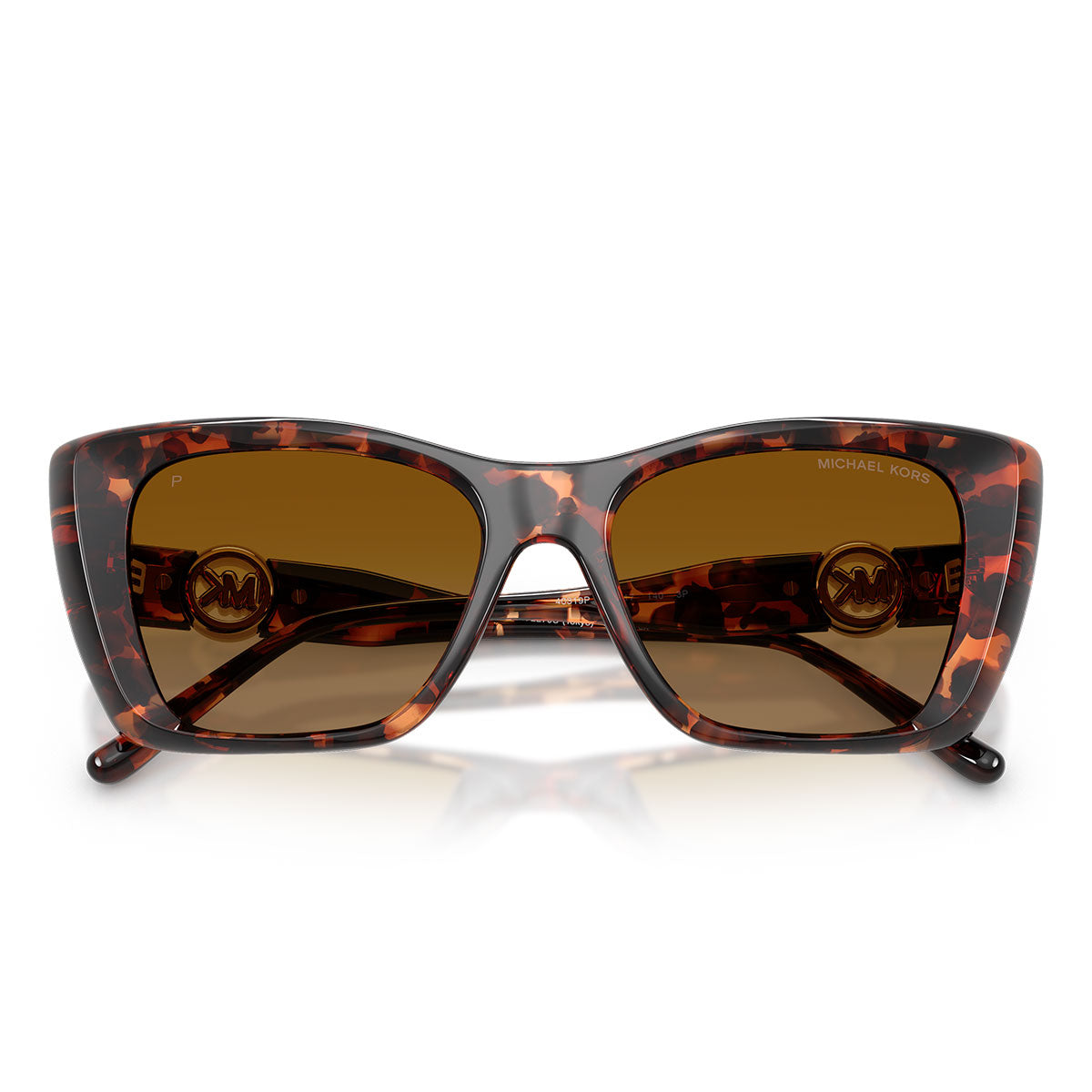 Sulle aste, le curve morbide del logo MK Pop Charm creano un elegante contrasto con le linee forti e strutturate, donando equilibrio e carattere al modello. Un dettaglio distintivo che rende questi occhiali immediatamente riconoscibili.