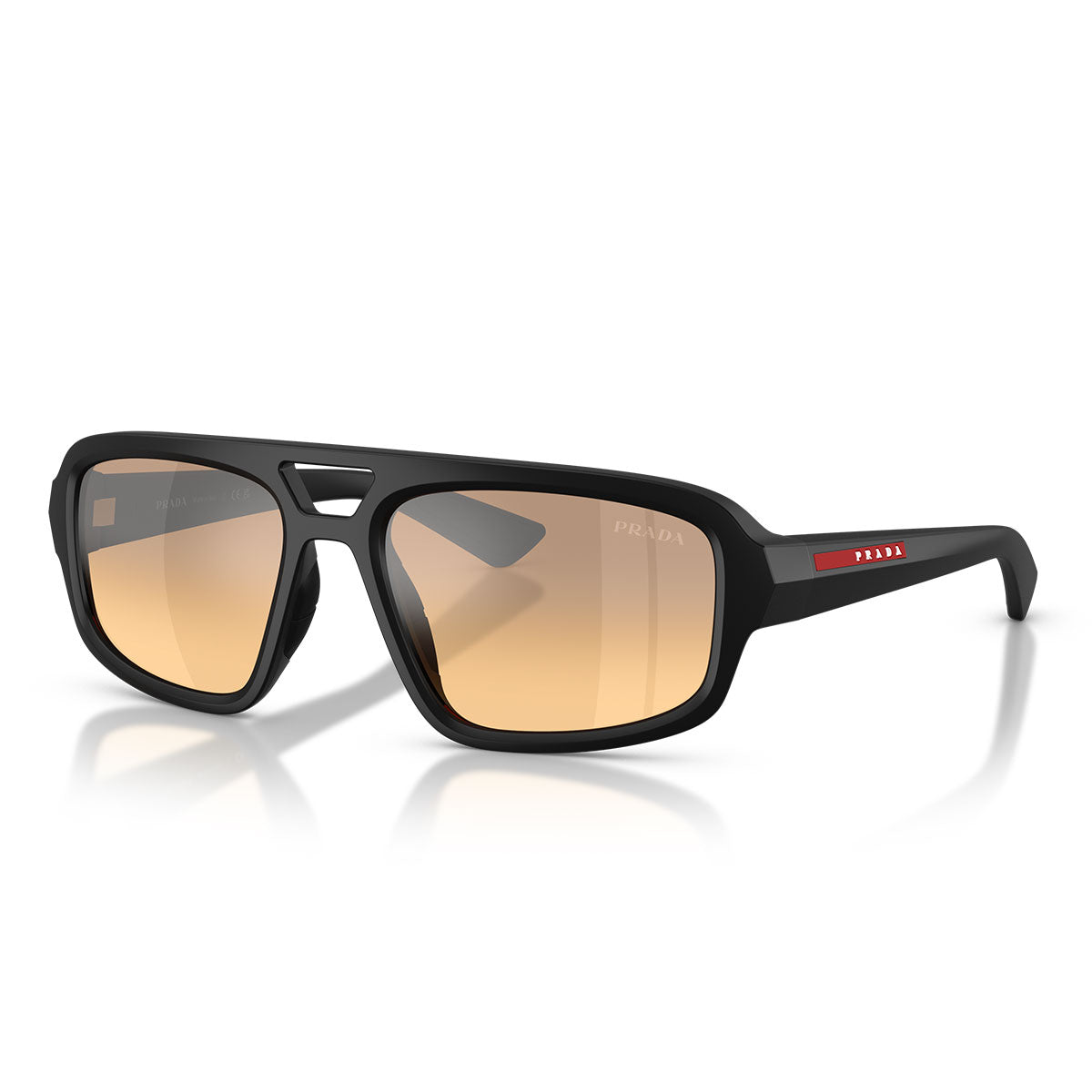 Prada Occhiali da Sole PSB11SU 1BO40Z Linea Rossa Nero Opaco/Arancione Specchiato Uomo