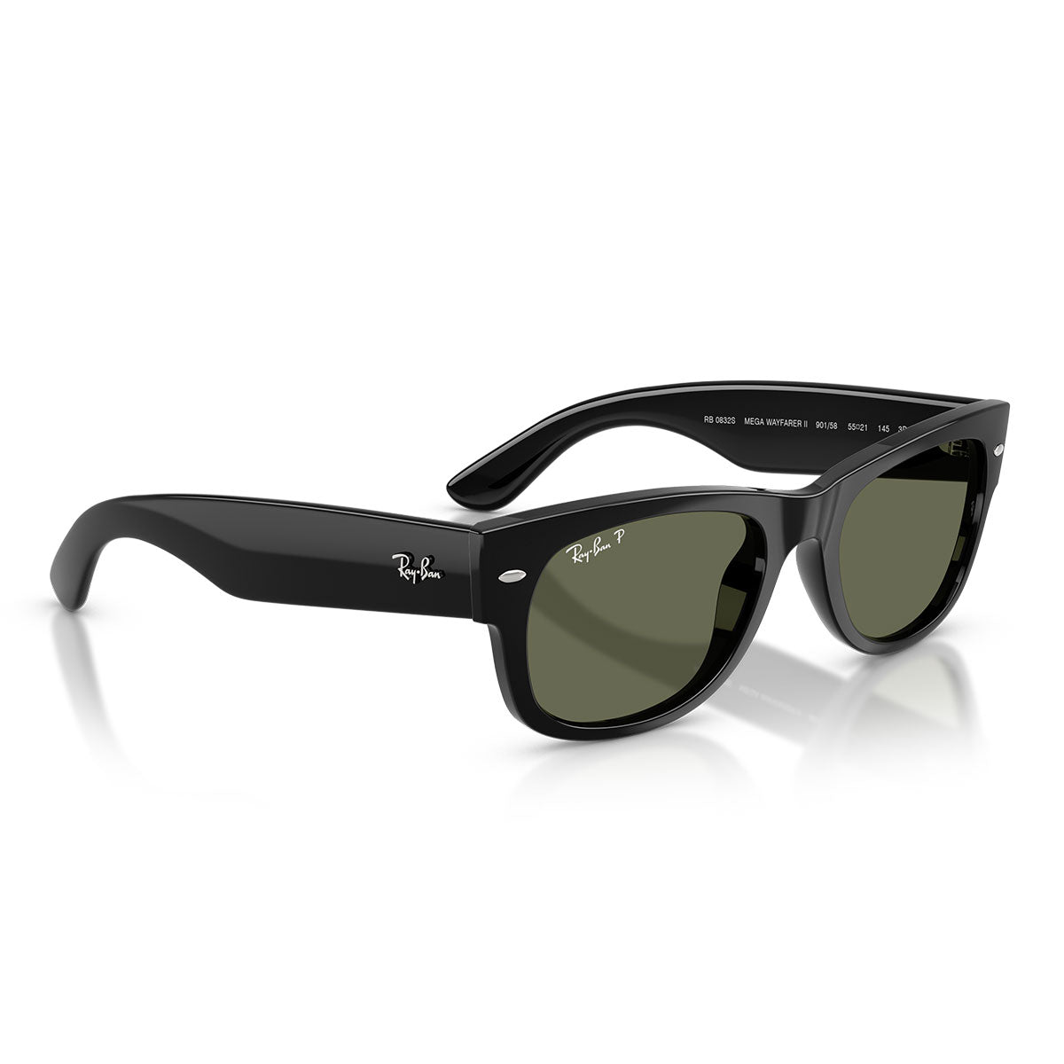 Ray-Ban Occhiali da Sole RB0832S 901/58 Mega Wayfarer II Nero/Verde Unisex Polarizzati