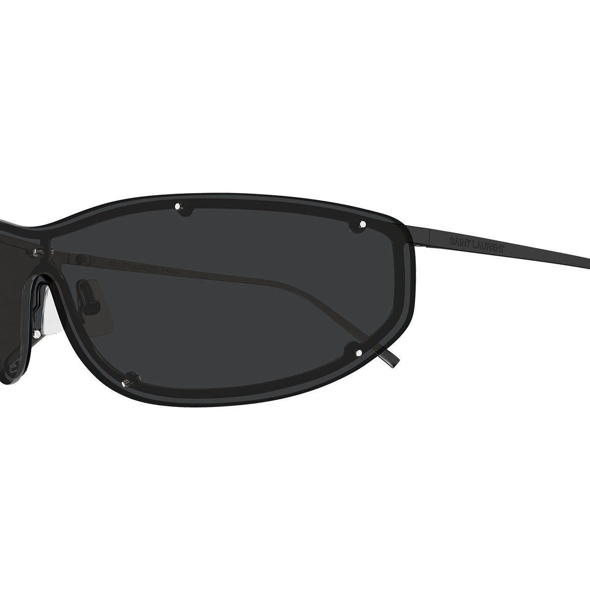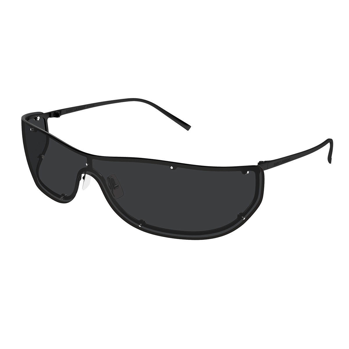 Il design è quello di una maschera con forma rettangolare stretta e morbida, capace di avvolgere il volto con eleganza e carattere. Le linee pulite ma scolpite rendono il modello immediatamente riconoscibile, perfetto per interpretare un’estetica fashion-forward e contemporanea, tipica dell’universo Saint Laurent.