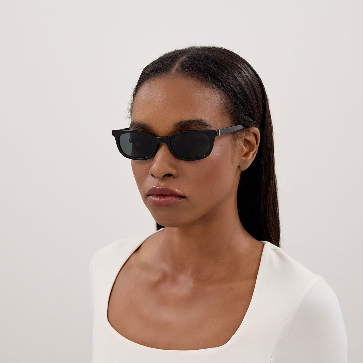 I Saint Laurent SL M160 esprimono una femminilità decisa e contemporanea, grazie a una montatura rettangolare da donna dalla struttura sottile e stretta, pensata per uno stile moderno, minimal e di forte personalità.